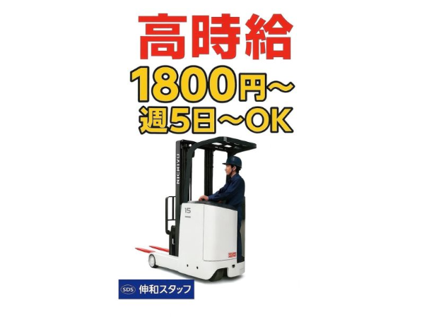 【経験者優遇】新設の物流倉庫のフォークリフト作業/時給1,800円!マイカー通勤可/交通費規定内支給◎